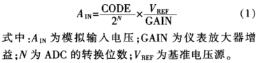 當AD7793配置為單極性工作模式時,模擬輸人電壓信號計算公示為