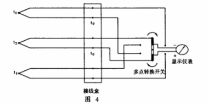 b)幾支熱電偶共用--套測量儀表的測量線路,國外大多采用此線路。如圖4所示;