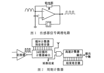 使用傳感器首要的問題是如何將傳感器輸出的模擬信號數字化,本設計采用了一種將鉑電阻阻值變化調制為時變頻率信號的方法。為把傳感器的阻值變化轉換成頻率變化,可將鉑電阻放入RC振蕩電路,如圖1所示。振蕩電路由比較器和連在正反饋端的觸發器組成,在振蕩電路中,傳感器看作可變電阻。通過對觸發器設置適當的閾值即可將傳感器的阻值變化轉換為時變頻率方波)信號。再將該信號輸入到如圖2所示的計數器,在給定的循環周期內利用高速計數器解調頻率信號,從而數字化為與振蕩頻率成比例的值,繼而成比例于被測物理量(溫度值)。