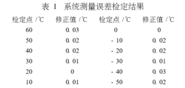 由表1可看出,被測溫度從-50~+60℃變化了110℃,而實測溫度值與標準溫度值的最大誤差為0.03℃,所以系統的最大測量誤差小于0.03%(Es)。