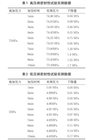 1)高壓端密封試驗